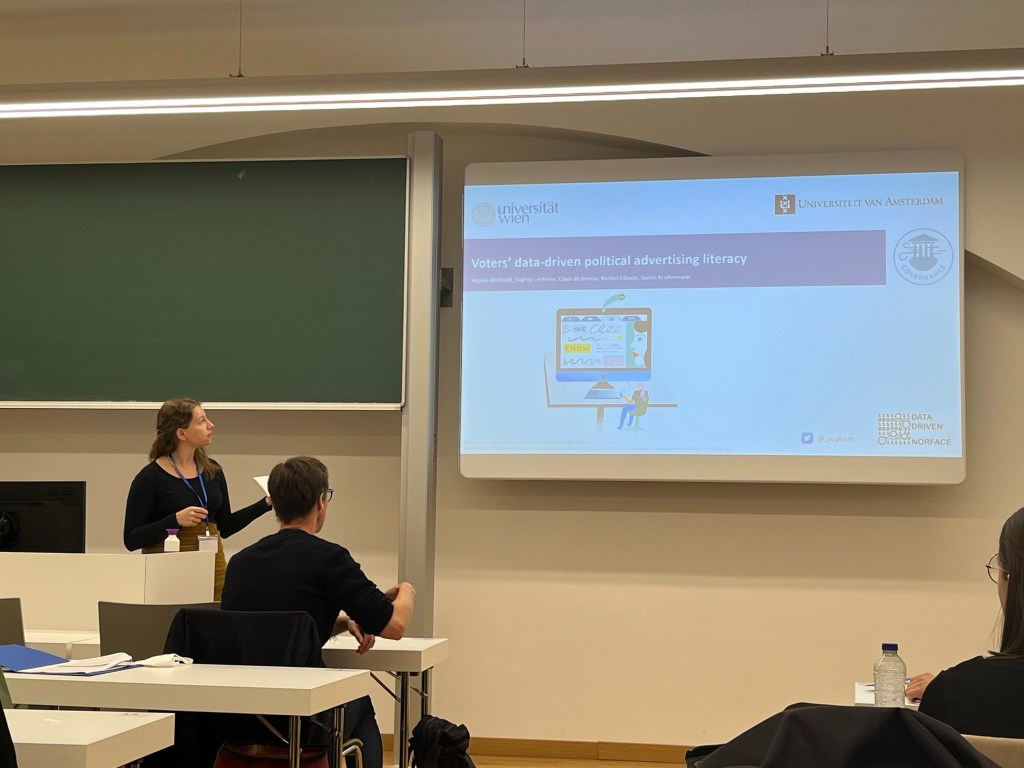 PhD candidate Sophie Minihold presented a paper on Data-Driven Political Advertising Literacy in the panel on New perspectives on political and civic engagement